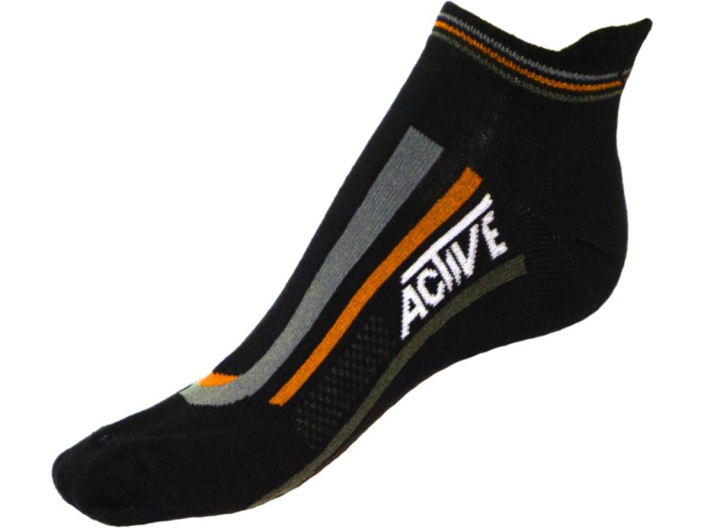 Elastické dětské> slabé nízké ponožky ke každodennímu nošení i pro sportovní aktivity, s neonově oranžovým pruhem. Díky použitému elastanu dobře drží na noze. Nad patou je umístěn jazýček chránící achilovku proti oděru. Odstíny barev a vzory se mohou mírně lišit. Vyrobeno v České republice.Doplňkové parametry