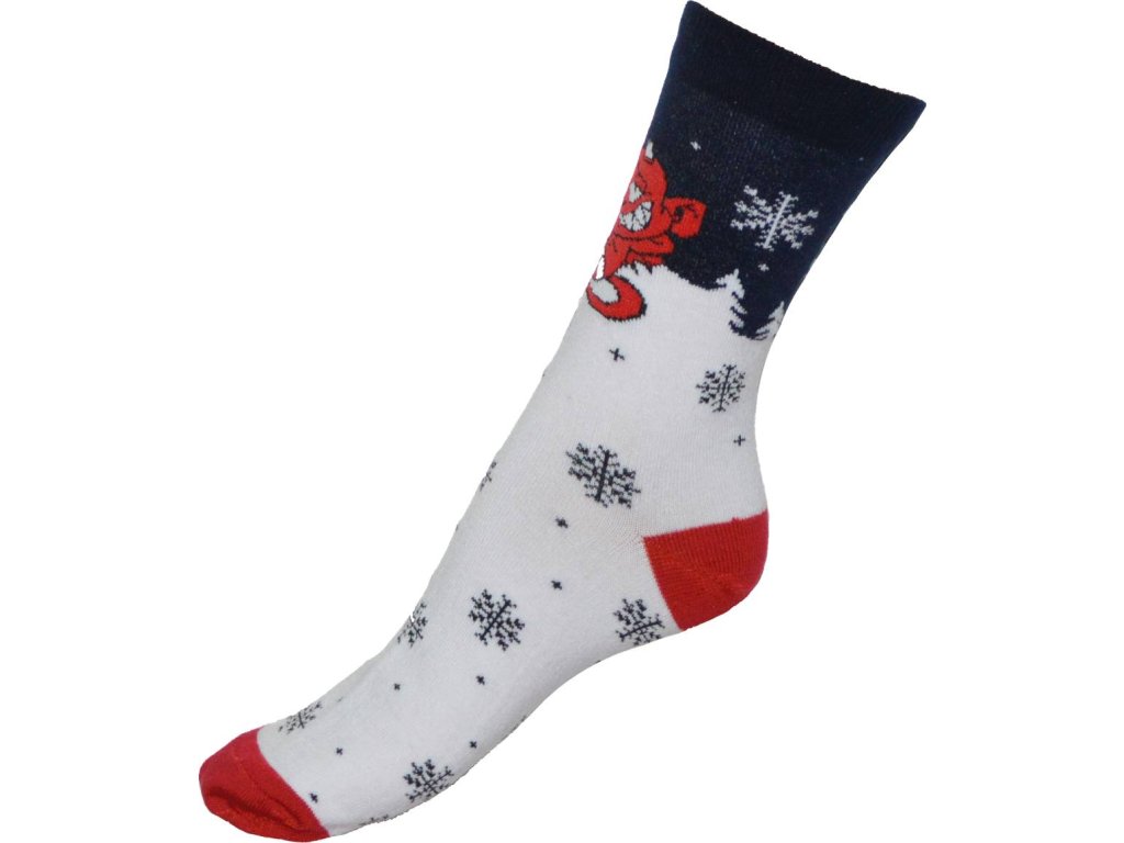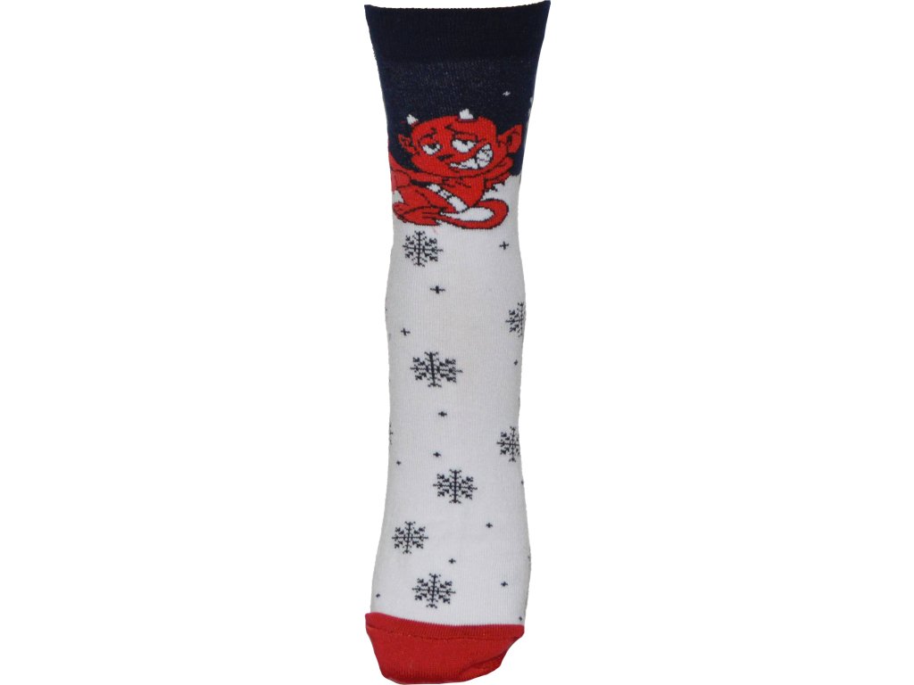 Potěšte sebe i své děti stylovým dárkem. Mikulášské hladké elastické ponožky s motivem čerta, díky použitému elastanu dobře drží na noze. Ponožky jsou vhodné pro běžné nošení i zpříjemnění sychravých podzimních dní. Klasická délka lýtka. Odstíny barev a vzory se mohou mírně lišit. Vyrobeno v České republiceDoplňkové parametry