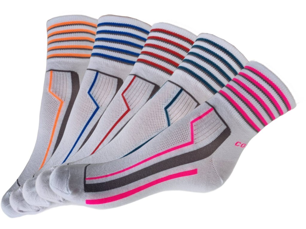 Sportovní elastické funkční hladké ponožky se speciálním vláknem PES COOLMAX, vhodné na běh, cyklistiku a další sporty. Vyvinuté pro náročné sportovní aktivity s vysokou zátěží i běžné nošení. PES COOLMAX je materiál vyvinutý firmou Dupont. Je vyroben z profilovaných vláken, která napomáhají odvádět pot od pokožky a urychlují jeho odpařování. Jeho dostatečná pružnost a měkkost zaručuje pohodlí a větší přizpůsobivost při sportování. Ponožky z Coolmaxu udrží vaše nohy v suchu a pohodě i při největším horku a napomáhají tak ke zvyšování výkonnosti při sportu tím, že rychle odvádí pot a pomáhají udržovat nohy v suchu. Výhody materiálu Coolmax:- rychlý přenos potu od pokožky