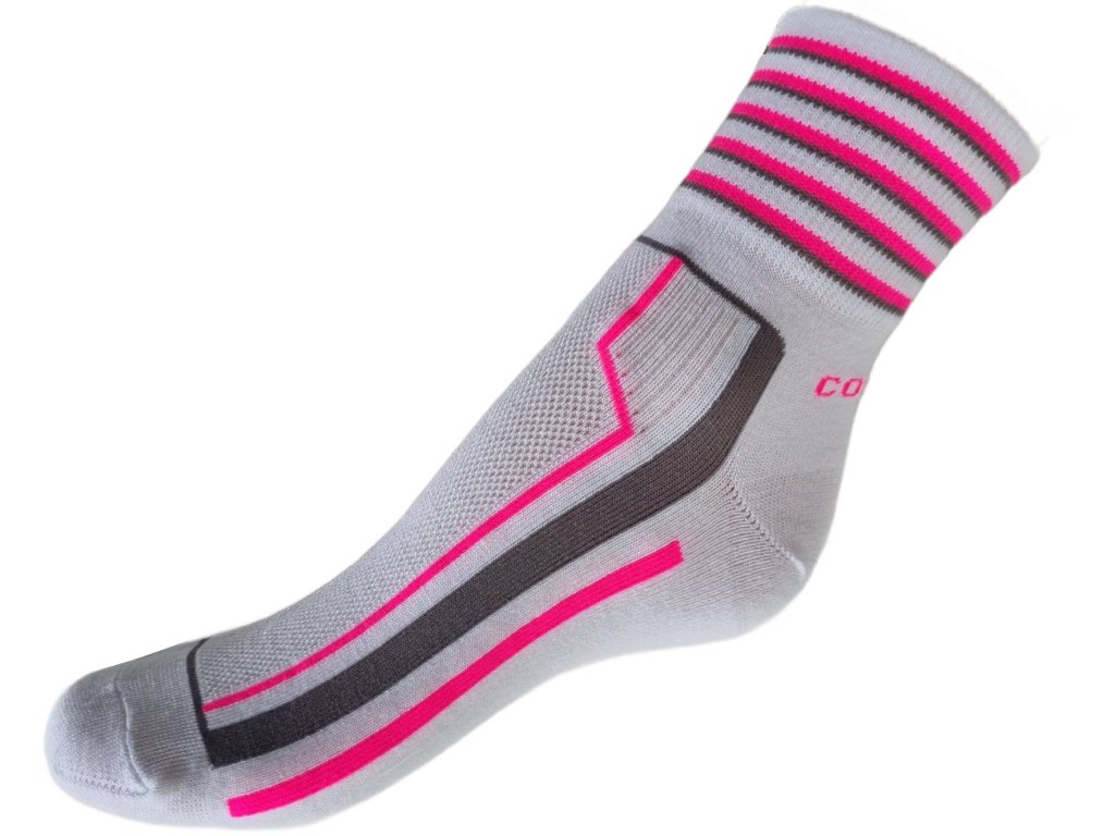 Sportovní elastické funkční hladké ponožky se speciálním vláknem PES COOLMAX, vhodné na běh, cyklistiku a další sporty. Vyvinuté pro náročné sportovní aktivity s vysokou zátěží i běžné nošení. PES COOLMAX je materiál vyvinutý firmou Dupont. Je vyroben z profilovaných vláken, která napomáhají odvádět pot od pokožky a urychlují jeho odpařování. Jeho dostatečná pružnost a měkkost zaručuje pohodlí a větší přizpůsobivost při sportování. Ponožky z Coolmaxu udrží vaše nohy v suchu a pohodě i při největším horku a napomáhají tak ke zvyšování výkonnosti při sportu tím, že rychle odvádí pot a pomáhají udržovat nohy v suchu. Výhody materiálu Coolmax:- rychlý přenos potu od pokožky