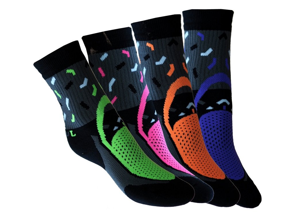 Dětské sportovní polofroté ponožky, vhodné na běh, cyklistiku a další sporty. Díky elastické zóně v místě kotníku dobře drží na noze. Froté chodidlo zaručuje pohodlný měkký došlap. Tříčtvrteční délka lýtka, výrazné pestré barvy. Odstíny barev a vzory se mohou mírně lišit. Vyrobeno v České republiceDoplňkové parametry