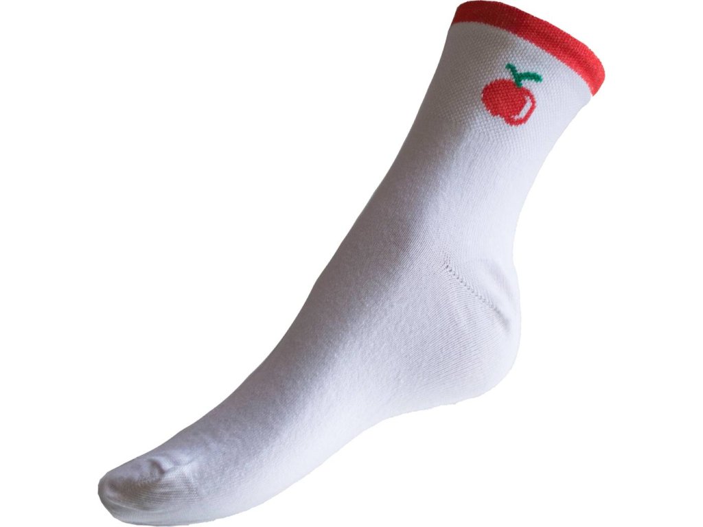 Elastické slabé ponožky s obrázkem jablka vhodné ke každodennímu nošení i pro sportovní aktivity. Díky použitému elastanu dobře drží na noze. Tříčtvrteční délka lýtka. Ponožky nabízíme také ve zvýhodněné sadě 4+1 s dalšími druhy ovoce. Odstíny barev a vzory se mohou mírně lišit. Vyrobeno v České republice.Doplňkové parametry
