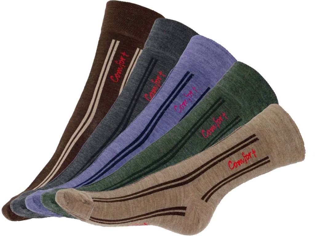 Moderní vlněné elastické ponožky pro běžné nošení vhodné k riflím i k obleku. Ponožky jsou vyrobeny z ovčí vlny Merino. Ovce se chovají v drsnějších klimatických podmínkách, proto se musí umět vyrovnat s vysokými teplotními rozdíly. Největší předností vlny jsou tak její termoregulační a izolační vlastnosti. Merino je velmi jemná vlna, 14–25 mikronů, stapl 50–150 mm, silně zkadeřená, měkká, poměrně málo lesklá. Nejčastější chov v Austrálii a na Novém Zélandu.Vlastnosti ovčí vlny: