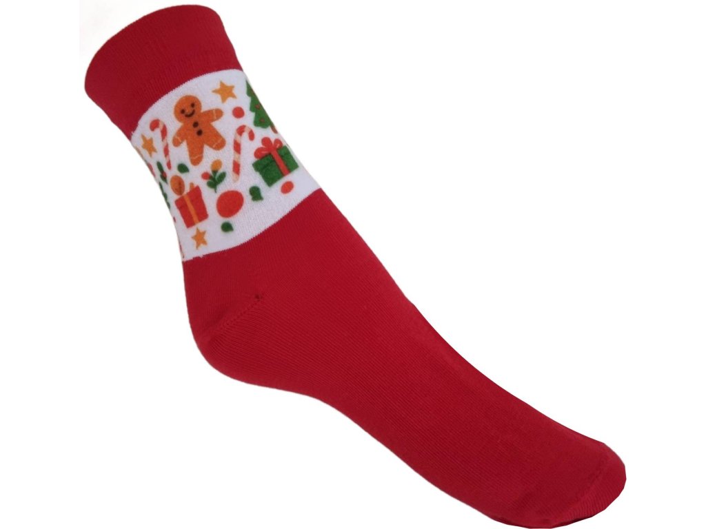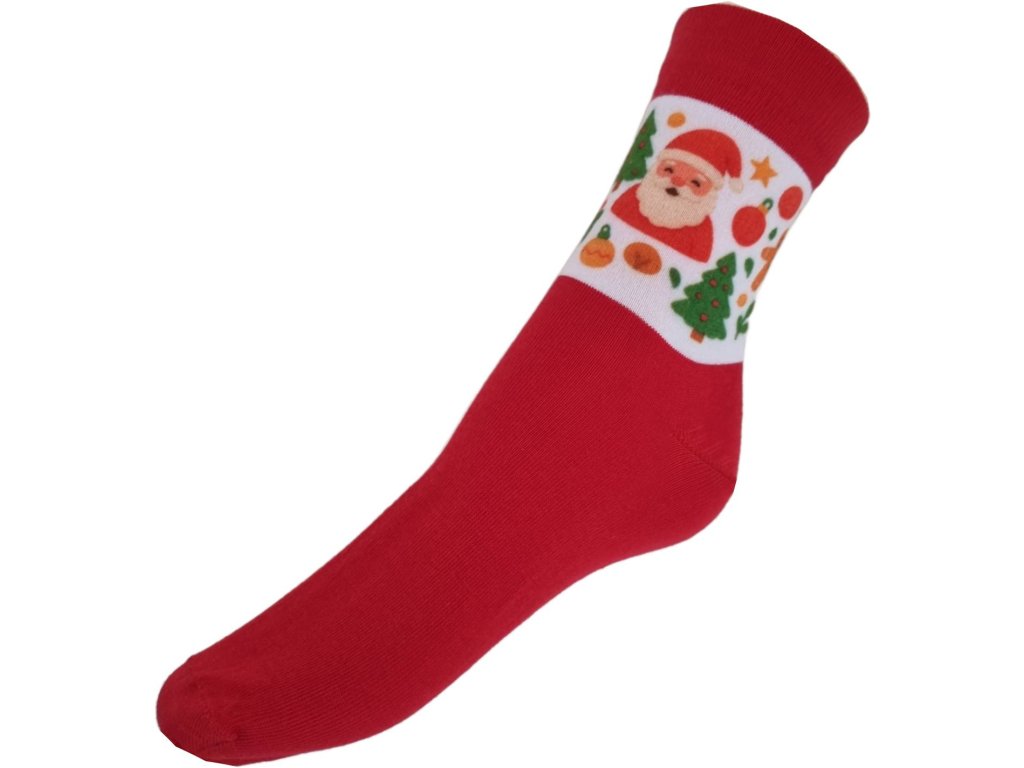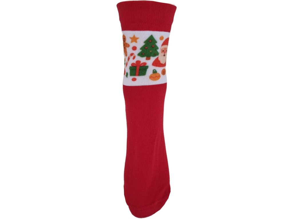 Hladké elastické ponožky potisknuté Vánočním motivem, díky použitému elastanu dobře drží na noze. Ponožky jsou vhodné pro běžné nošení, zpříjemnění Vánočních chvil a obdarování blízkých. Klasická délka lýtka.