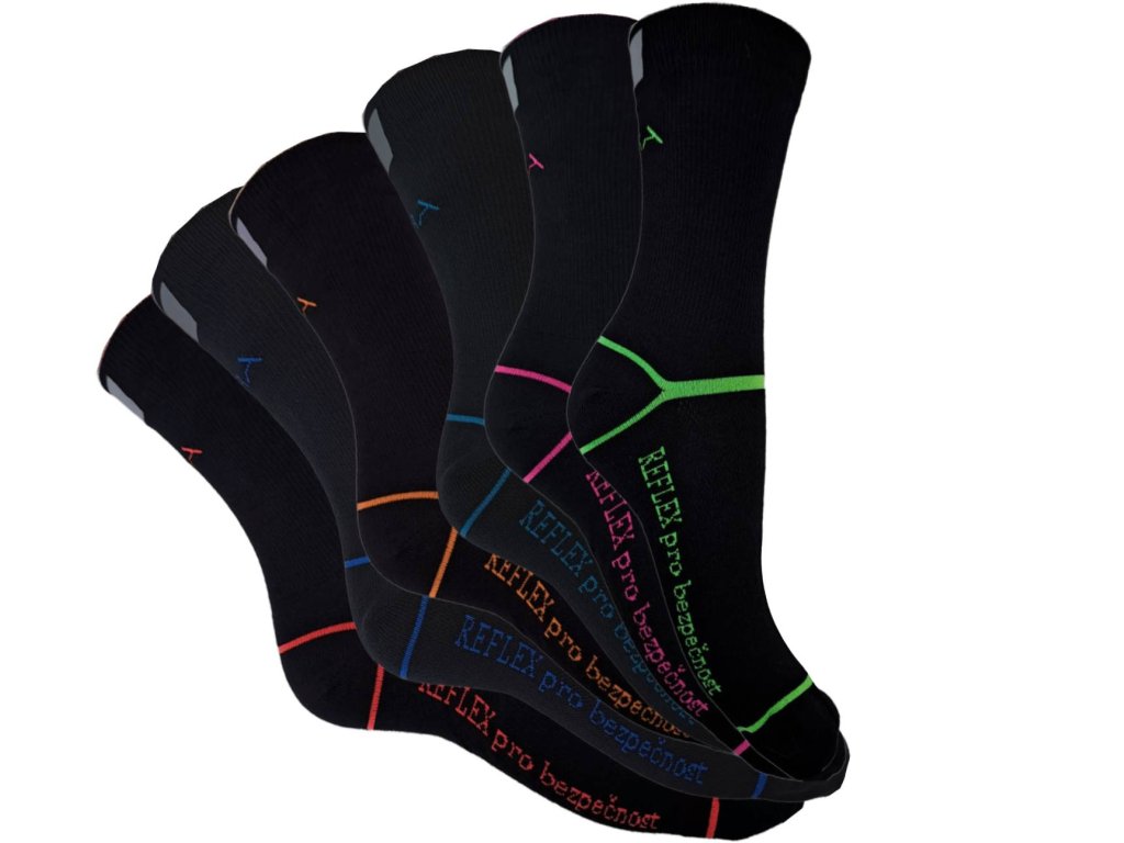 Sportovní elastické hladké ponožky s reflexním prvkem, vhodné na běh, cyklistiku a další sporty.
